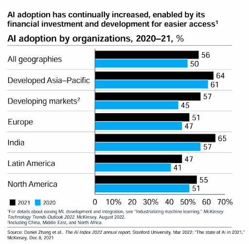The chart highlights how enterprise AI adoption rapidly increased in just one year. This mirrors the transformation I witnessed: enterprises weren’t just experimenting but embedding AI into the core of customer service and operations.