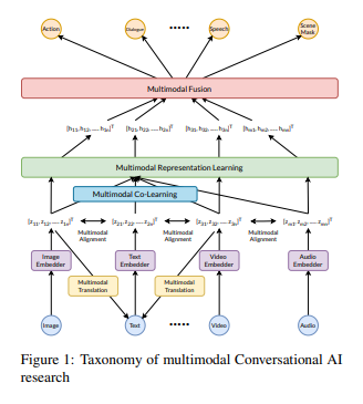 This figure about taxonomy illustrates the framework used to build systems that combine text, audio, and visual input for more adaptive interactions, supporting seamless cross-channel experiences.
