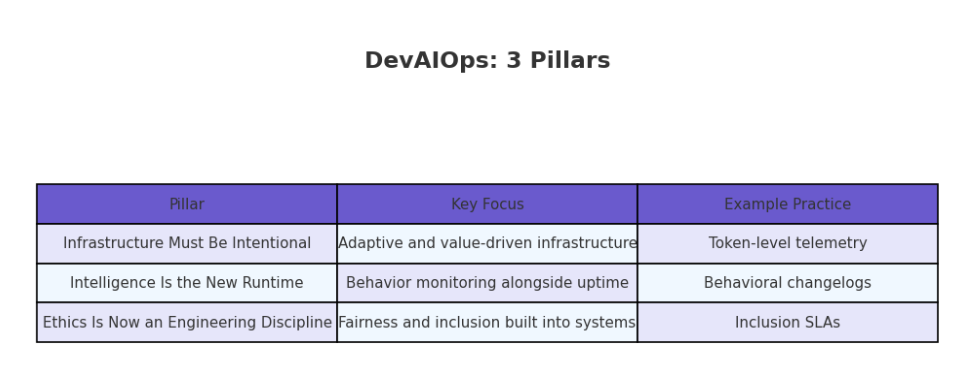 DevOps originated around CI/CD, short feedback loops, and reliable releases. But in the AI-native world, we need more. We need behavioral observability, traceable ethics, and tooling that prioritizes values alongside velocity. I call this new paradigm DevAIOps. Here are its three pillars: