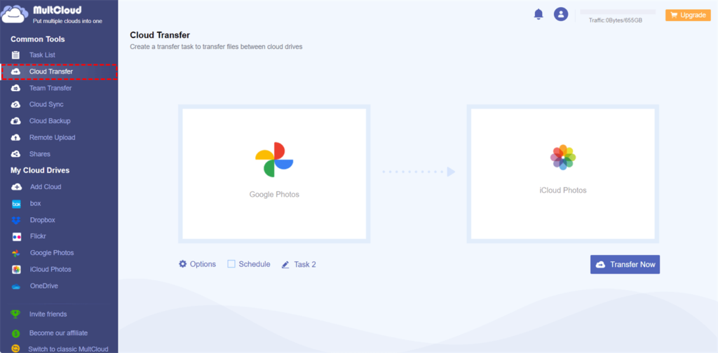 Imagine a bridge connecting your favorite cloud storage platforms. That’s precisely what MultCloud does. Using this free cloud management service, you may stop manually downloading and uploading files. It serves as a single hub that saves you time and effort by enabling direct photo transfers between Google Photos and iCloud Photos.