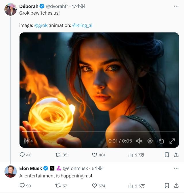 Even Elon Musk, the founder of Tesla, was captivated by Kling AI. After watching a video created with Kling—featuring a woman holding a burning rose, with cinematic-level visuals and dynamic effects—he liked the content and commented, “AI entertainment is happening fast.”