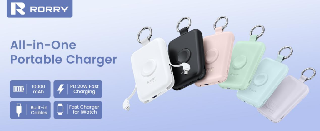 The RORRY Portable Charger has been a total game-changer for me! The compact design, combined with its 10000mAh capacity, makes it the perfect travel companion. I love the built-in cables, which means no more forgetting cords or dealing with tangled wires. The keychain design is genius—I can clip it onto my bag and always have a power source at hand.