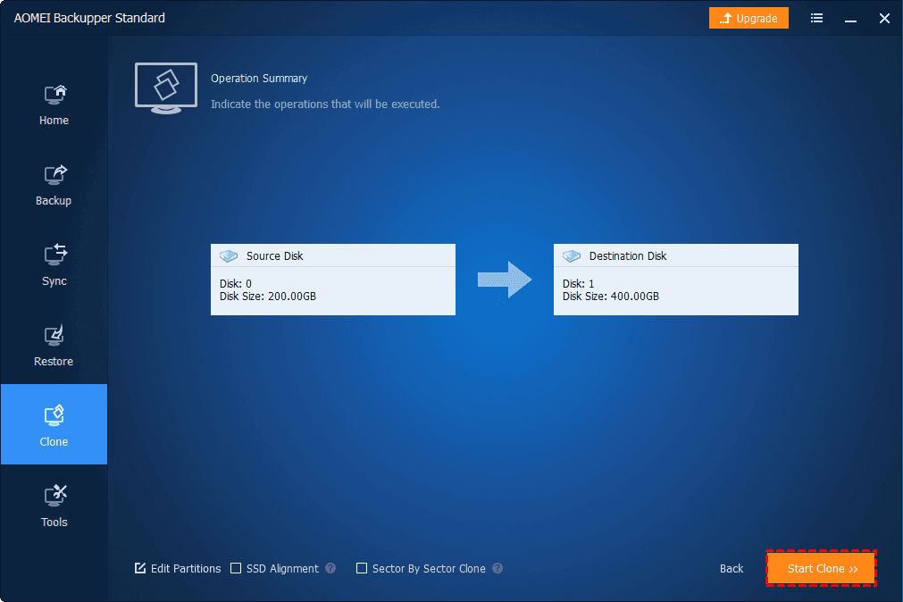 Step 5. Start Cloning: Click Start Clone and let AOMEI Backupper handle the rest! Sit back and relax as your disk cloning process completes effortlessly.