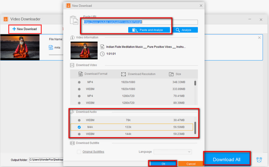 Step 3: From the available options, select the “M4A” option in the “Download Audio” section.